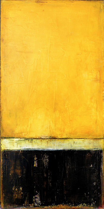 Yesterday was rather overcast, so this painting brightened up the day at the gallery walk and found a new home. It is recent, done with the same layering technique as I have used in other paintings. Much of the texture in the upper half of the piece is provided by a few coats of gesso under the paint. I hope this painting adds a little sunshine to your day!…from the studio