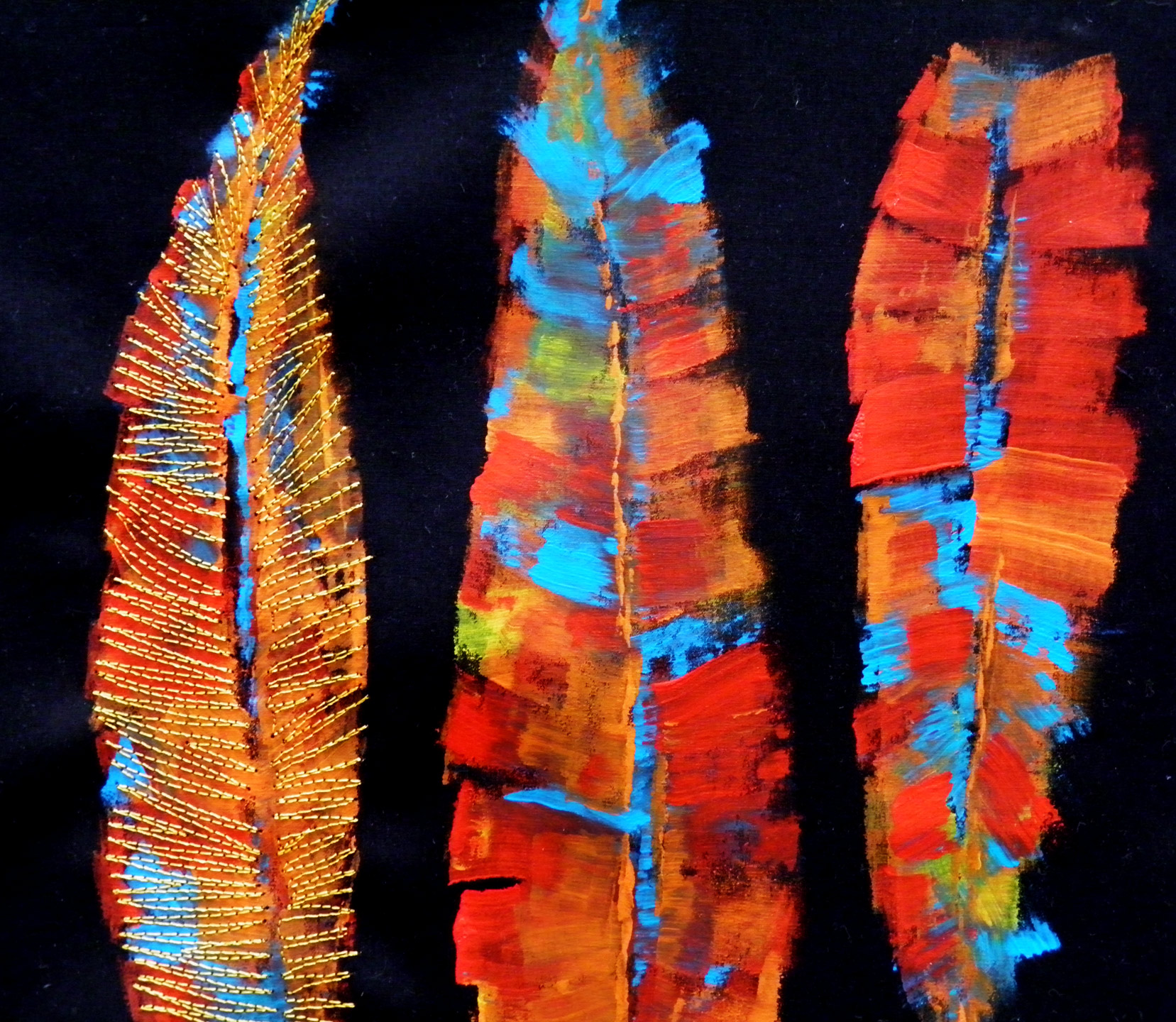 Painted-feathers 12/09/2012 Return to: Painting on Cotton … FeathersFull resolution (1657 × 1440) Image navigation Next Image Feathers Painted on Black Cotton...One Feather Stitched