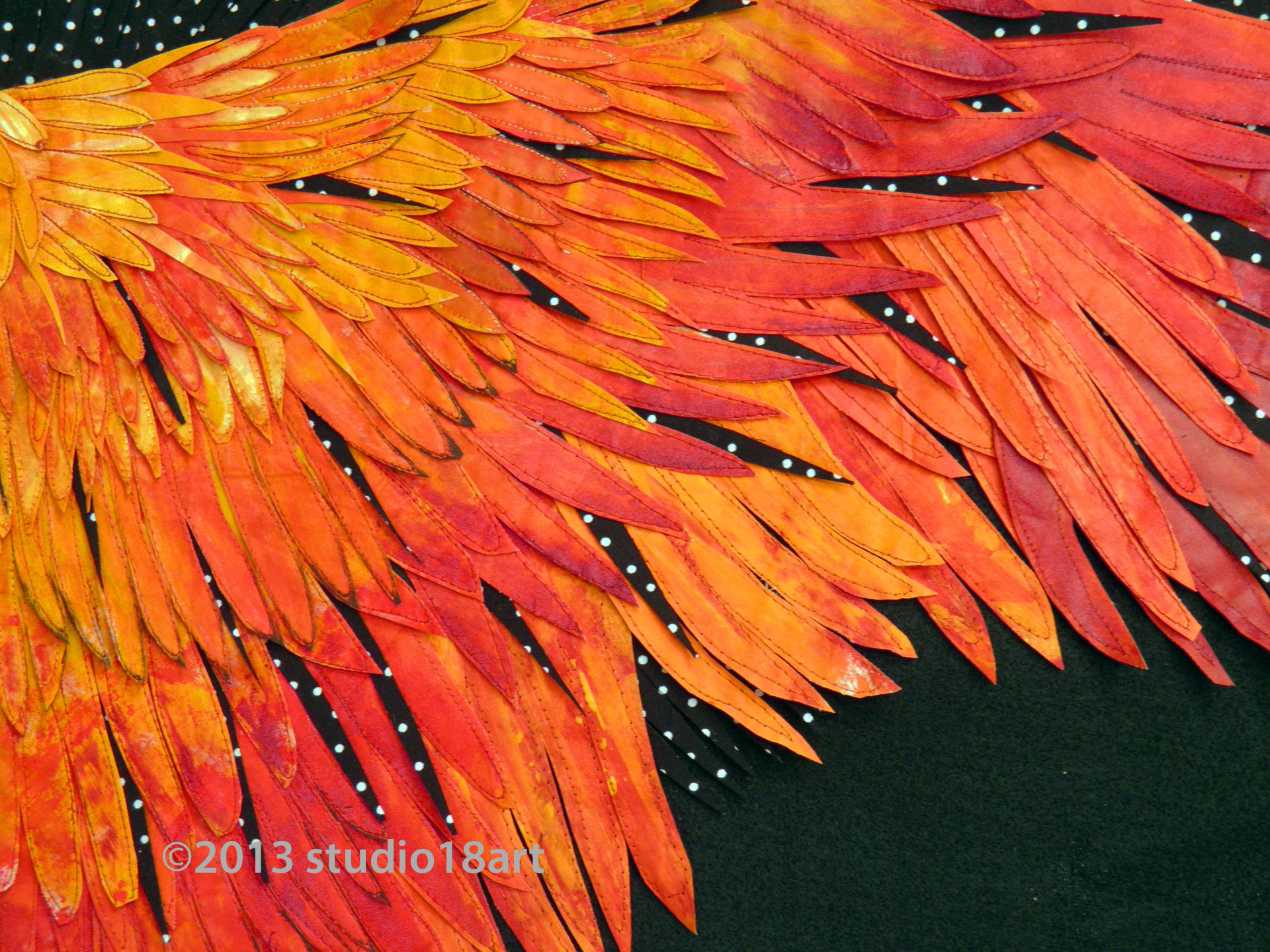 WING IN PROGRESS 02/05/2013 Return to: A Quilt in Two PartsFull resolution (1920 × 1440) Image navigation Previous Image A Section of the Bird Wing in Progress