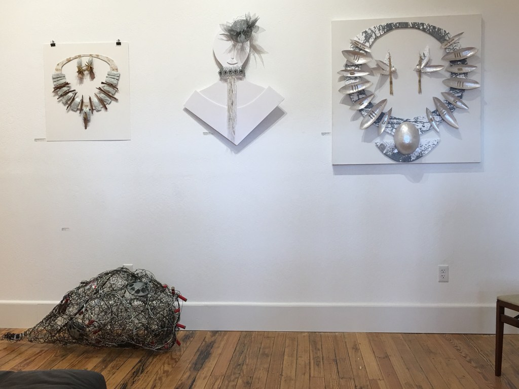 The following pieces are done by Mimi Peterson…Jewelry for Giants…and her husband, Art Peterson…Giant glasses, one of my favorite pieces in the show…from the gallery