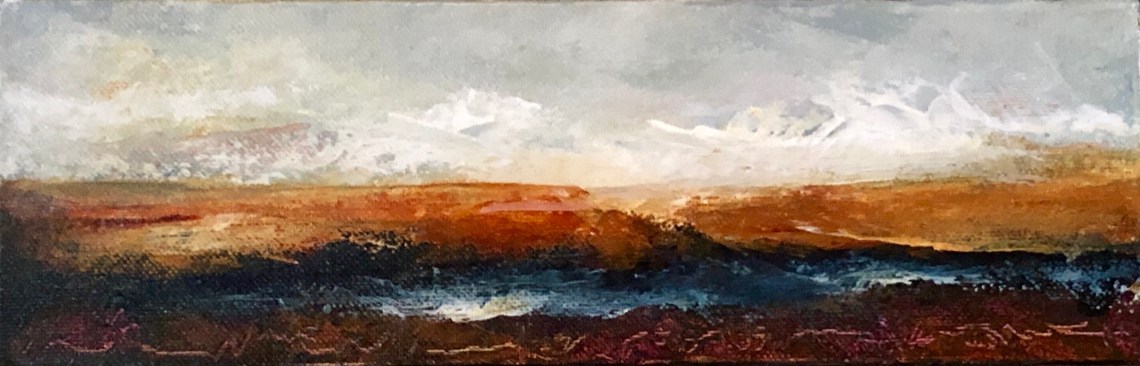 Small landscapes studio18artist10/04/201910/04/2019Paintings, Uncategorized Post navigation PreviousNext A few small landscapes…4×12 inches….to compliment the larger ones. I am having so much fun! MADRID HILLS…snowfall VIEW FROM THE MESA….south of Madrid RAGING ARROYO…north of Madrid Share this: Click to email a link to a friend (Opens in new window) Email Like Loading... Related