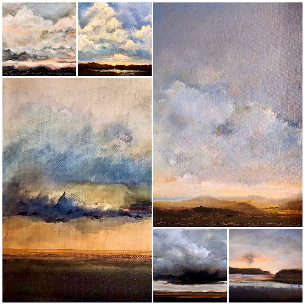 Painting, painting, painting! Life is good and the landscapes I painted in the past weeks have been delivered to the galleries… looking for a new home. Parts and pieces of some are collaged above. Tourism here in NM has been slowly picking up and, consequently, folks are taking home memories of their visits in the form of artwork…what a great choice.