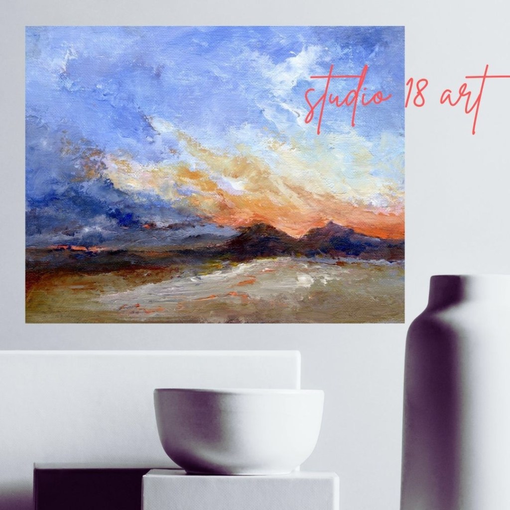 I also tasked myself to show a right to left movement in the clouds. My natural vision is left to right, as is evidenced by the majority of my landscape paintings, so, to keep things fresh, I opted for something new…at least for me. I think I like it!…from the studio