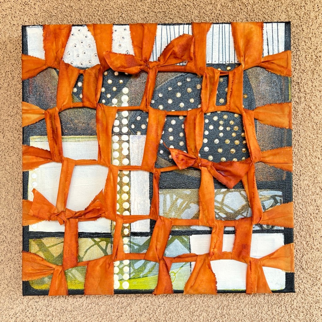 This woven wrapped canvas follows the path of two others I completed a short while ago. I like to have a group of three canvas pieces when working in this size. They look nice hung in a vertical column or horizontally in a row. They belong together.