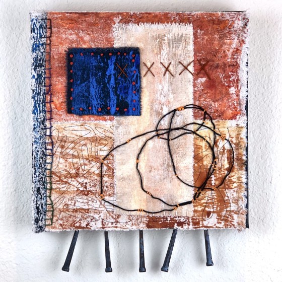 I completed two textile constructions in basically blue…love blue and black together. In this piece, I used my printed canvas … More