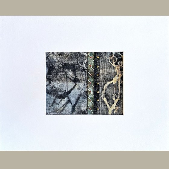 I completed two textile constructions in basically blue…love blue and black together. In this piece, I used my printed canvas … More